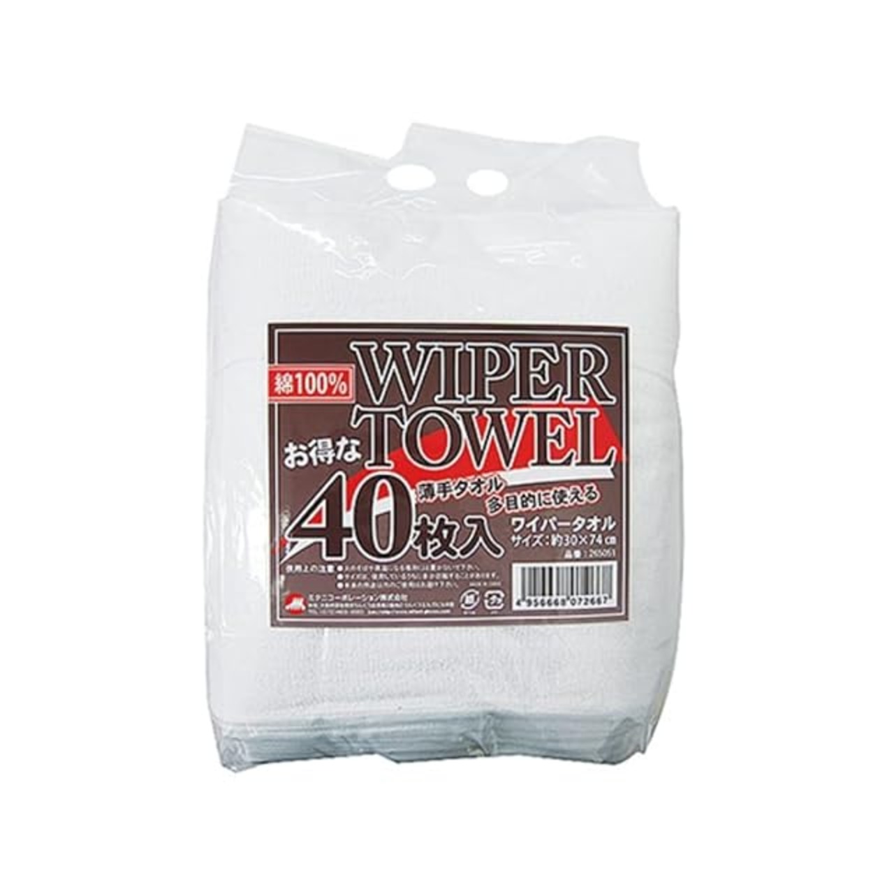 ミタニコーポレーション(MItani Corporation) ワイパータオル/40枚組・綿100%・白・パイル地・薄手/30×74cm