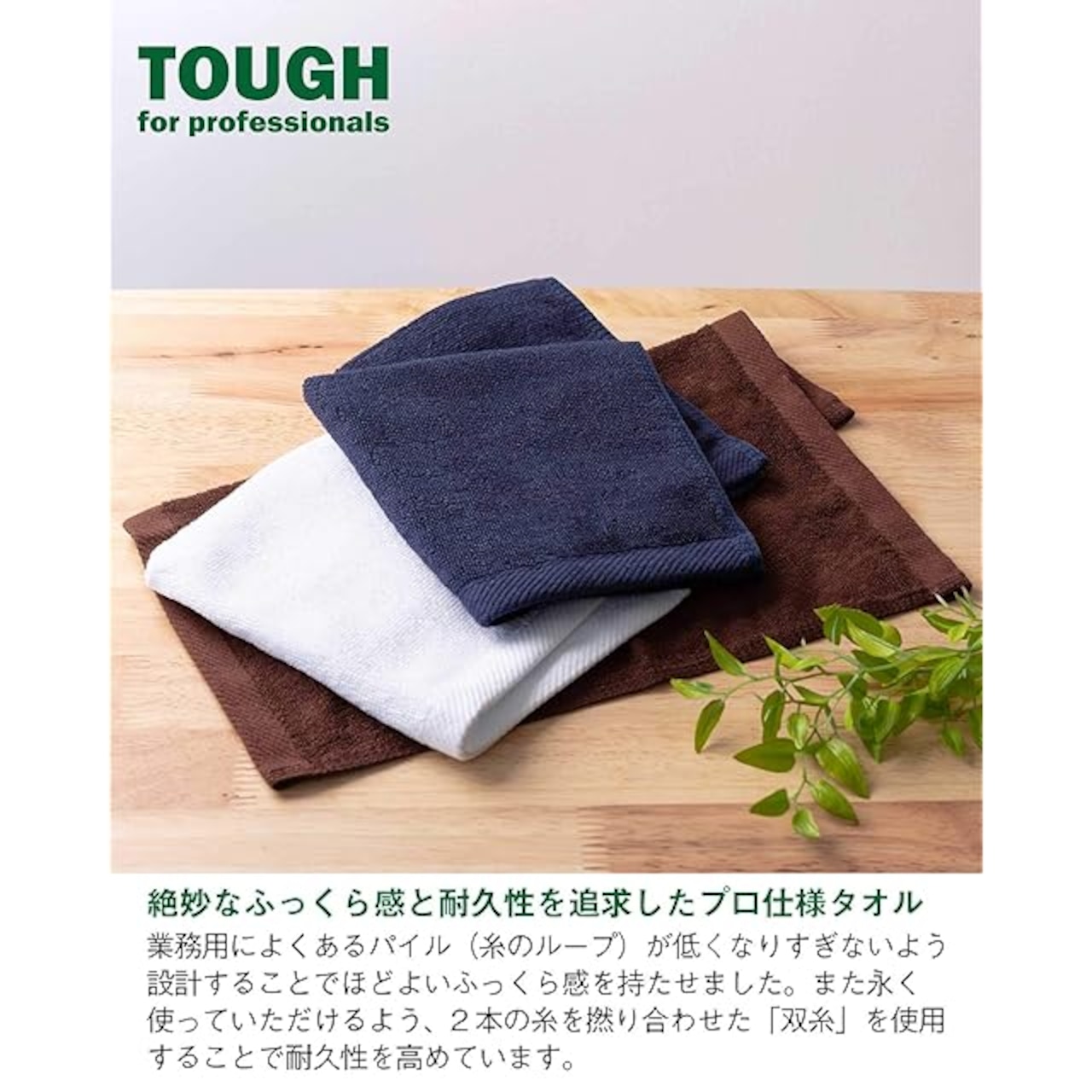 【抜群の耐久力】業務用に使われる2本の糸を撚り合わせた丈夫な双糸を厳選、適度なパイル長に仕上げているので長期間の使用可能