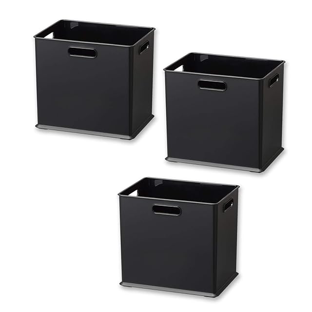サンカ インボックス 「カラーボックスにぴったりフィット」する収納ボックス SDサイズ ブラック (幅26.4×奥行19.2×高さ23.6cm)【3個組】 3方向取っ手付き 積み重ね可能 おしゃれ 引き出し 日本製 inbox 収納ケース squ+ ANIB-SDBK-3P | HiKaRiストア