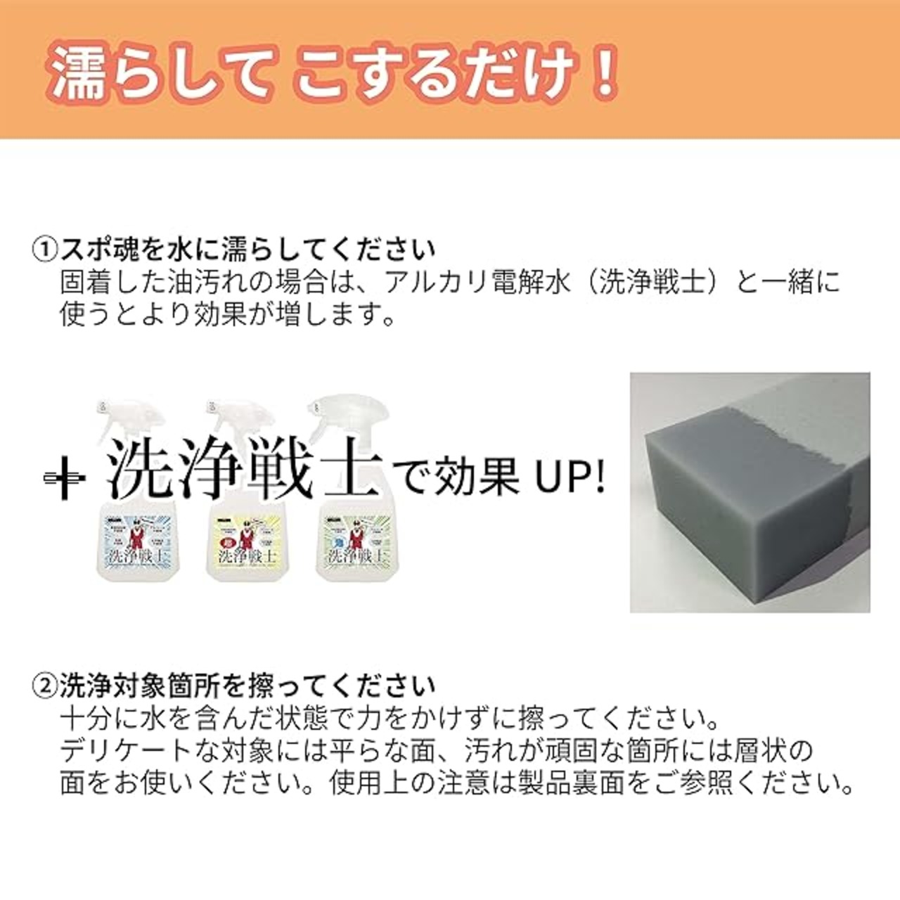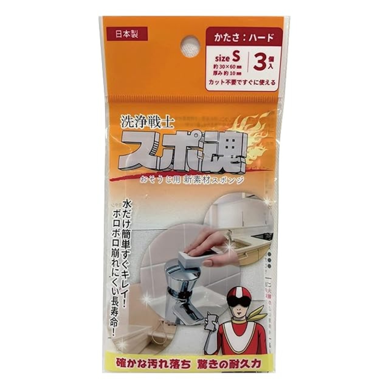【洗浄戦士】 スポ魂 ハードタイプ Sサイズ 3個入水だけで使える ボロボロ崩れない 高耐久 メラミンスポンジ 代替 キッチン お風呂 水まわり