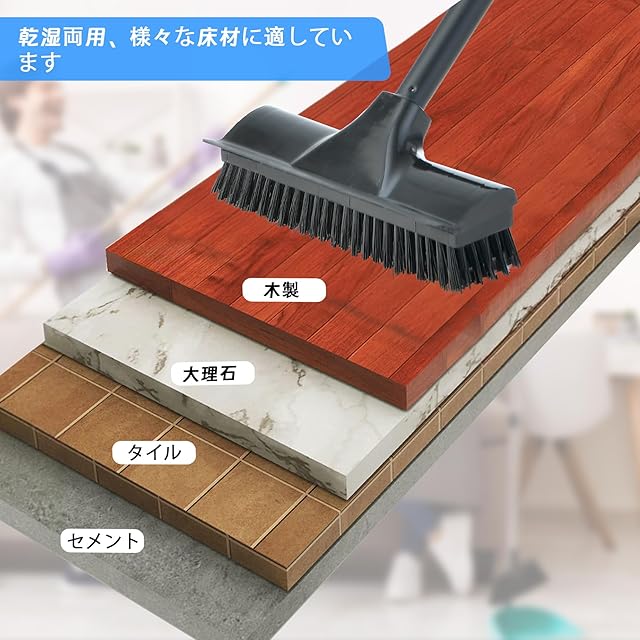 【汎用フロアスクラブブラシ】乾いても濡れても使用できるブラシです。タイル、コンクリートの床、ガラス面、浴槽、キッチン、バスルーム、壁、ガレージ、歩道、パティオなどにも広く使用できます。非常に便利です。