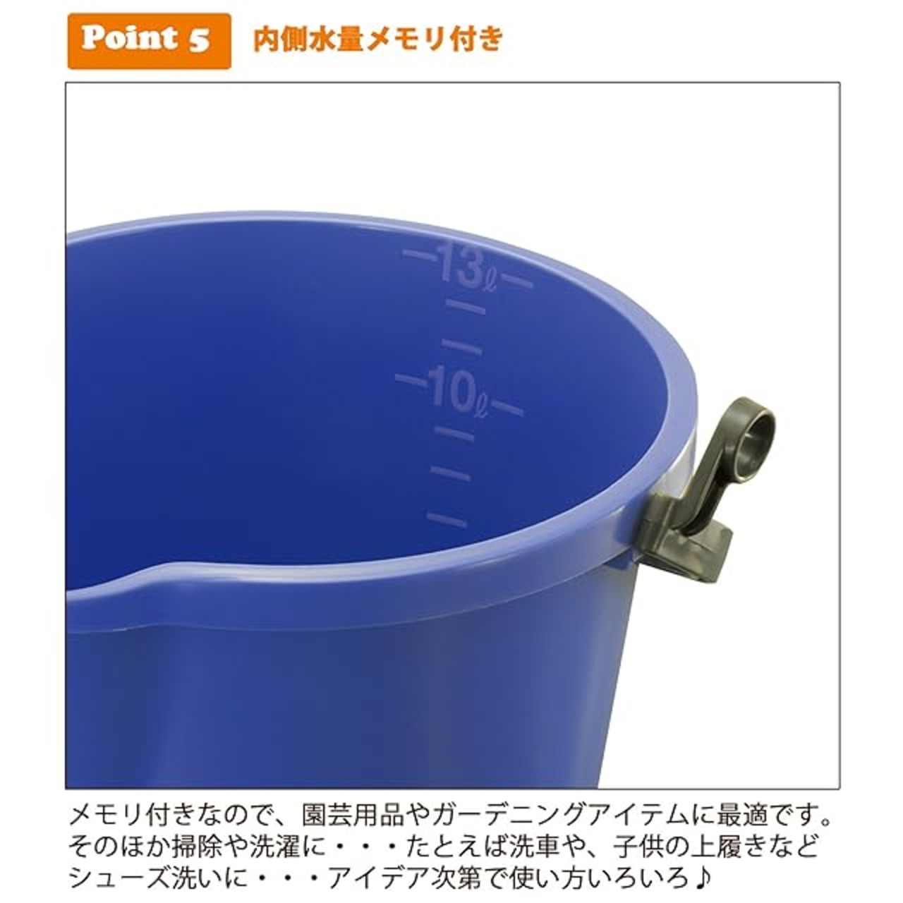 持ち手のつけ根にホース抑えが付いているので、バケツに水をためる時にとっても便利