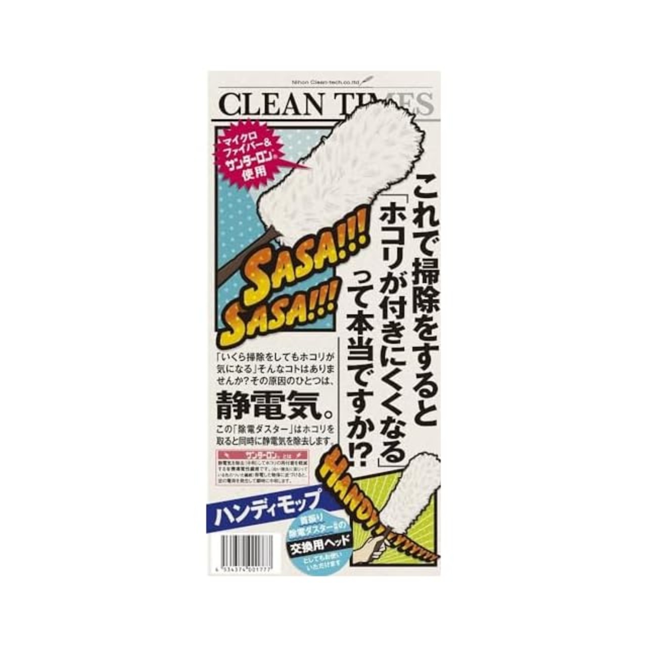 日本クリンテック Clean Times 除電ダスター ハンディモップ 直径10cm 全長52cm 静電気除去 高所 棚 オフィス 自宅 ホコリ取り 水洗い可能