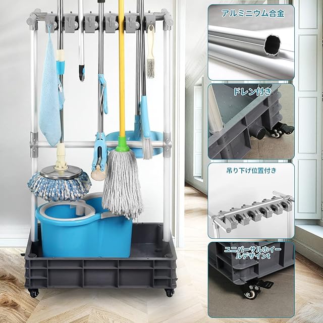 【超機能的】掃除用品を収納できる素敵な小さなカートで、バケツが床にこぼれる心配なく家の中を移動できます