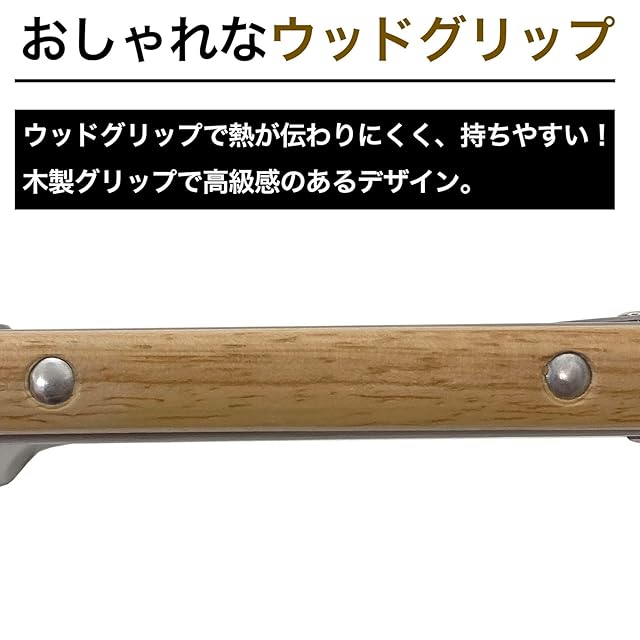 ✅アウトドア・キャンプ用の握りやすい木製グリップのステンレス製トングです。