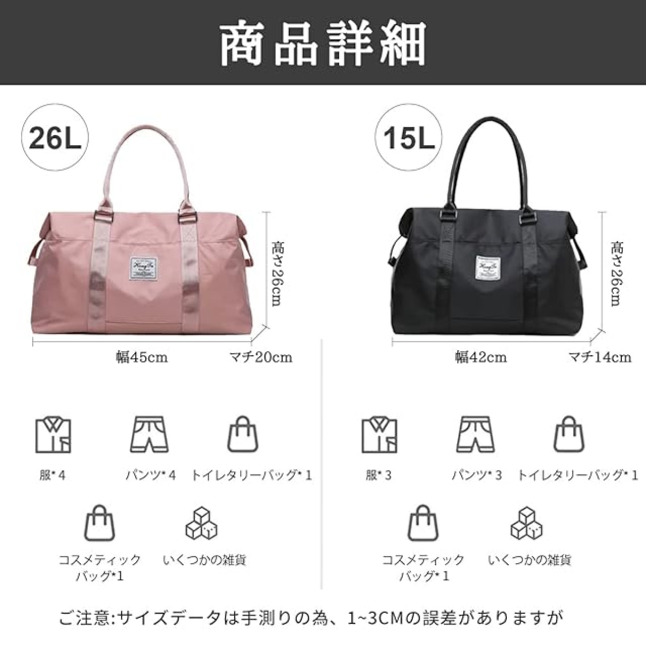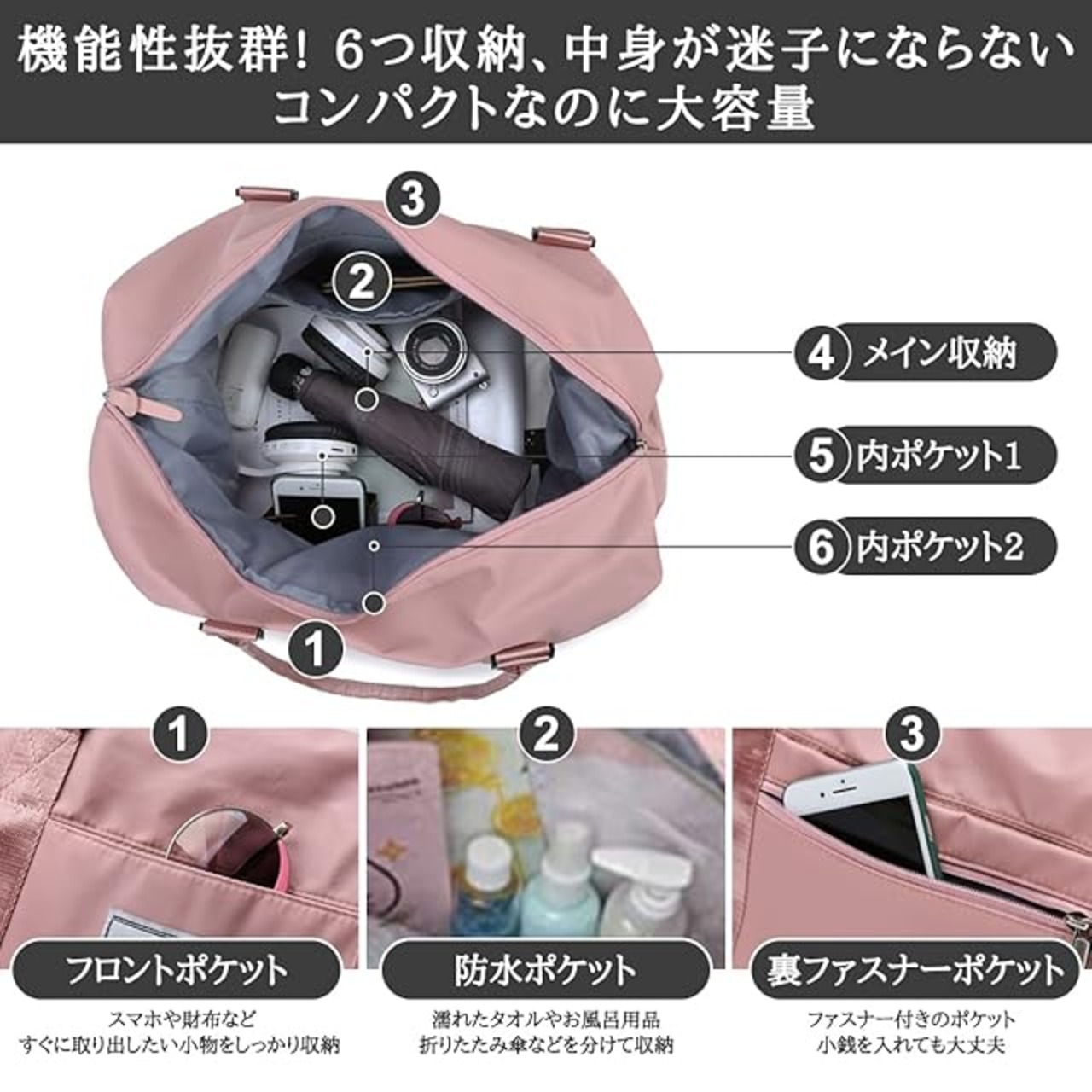 [Manatsulife]ボストンバッグ スポーツ ジム 旅行 大容量 修学旅行 撥水 軽い 4WAY 男女兼用 おしゃれ 乾湿分離 防水ポケット機内持込 1泊2泊 多機能 9B58(ピンク,26L)